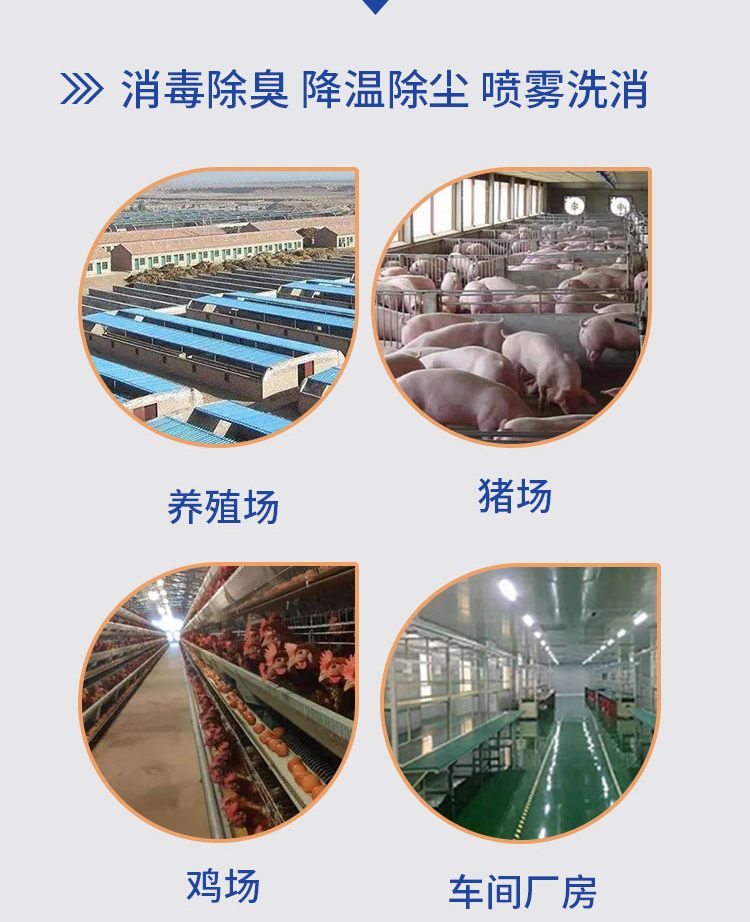 ?微小顆粒:通過高壓力將水或消毒液霧化成微小顆粒,通常在10微米到50微米的范圍內(nèi);? 均勻分布:能夠產(chǎn)生均勻細密的霧化效果,使微小顆粒均勻分布在空氣中或目標表面上。這種均勻分布可以確保消毒液充分接觸到目標區(qū)域的每一個角落,提高消毒效果;? 高效節(jié)水:高壓微霧產(chǎn)品能夠?qū)⒁后w轉(zhuǎn)化為更多的微小顆粒,從而實