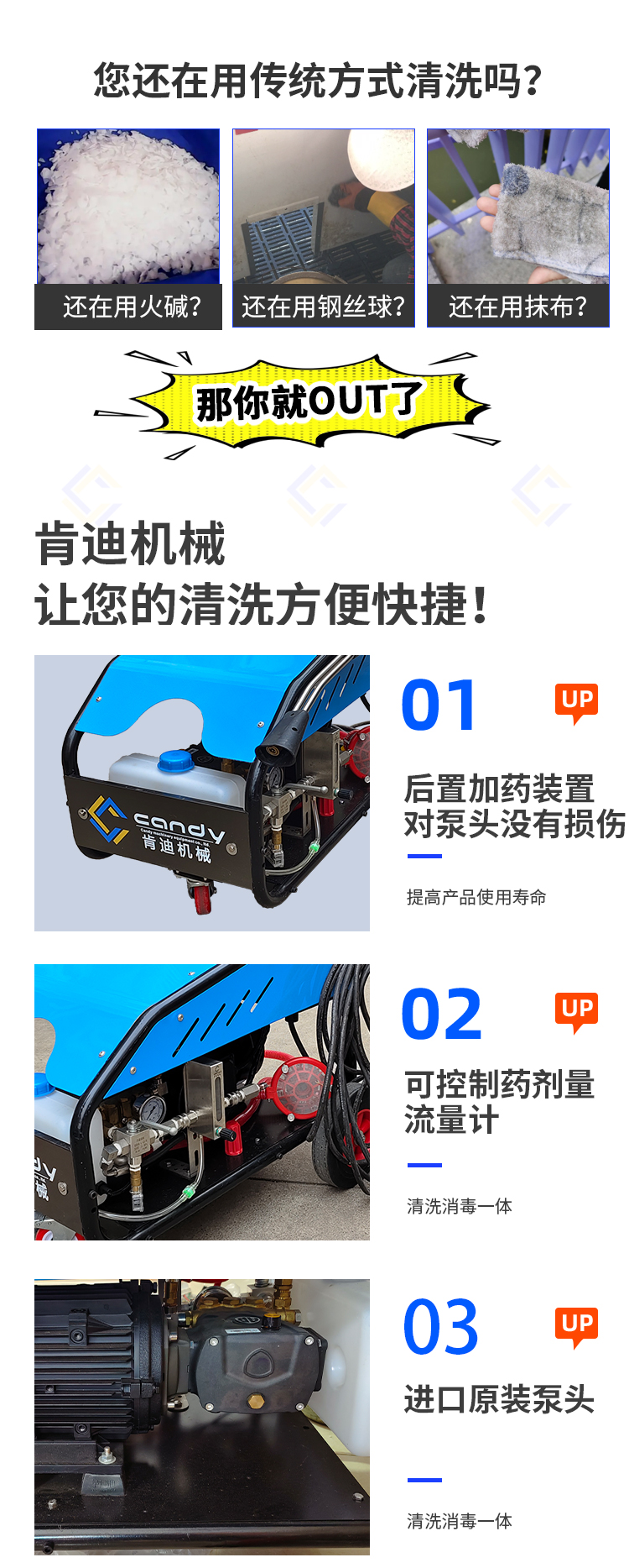 ? 配備意大利AR泵,工作時間長,穩(wěn)定可靠? 設置前置配藥箱,通過玻璃轉子流量計控制藥量噴射;? 配備快插接頭,操作方便簡單高效;? 低壓關槍停機,關閉噴槍瞬間停機;? 整機配備電路板控制便于維修安全可靠。